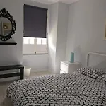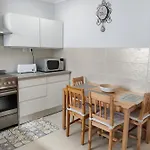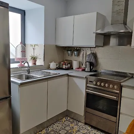 Long Beach Apartamento Al 普拉亚达维多利亚设有厨房和配卫星电视,正餐区和休息区的客房. 从这家公寓到Church of Santa Cruz,走路只需要5分钟.